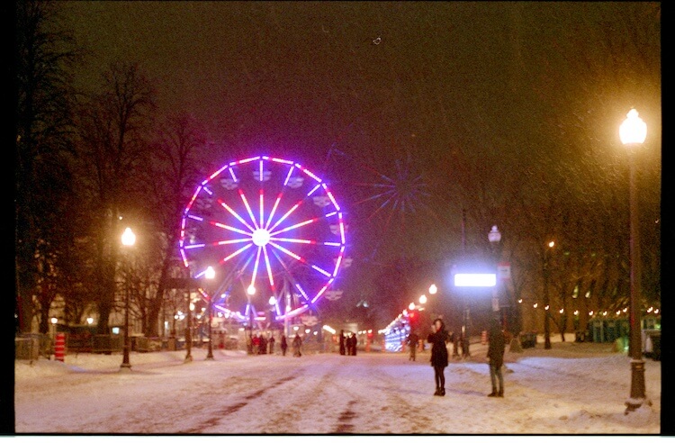 The day before the New Year?. We left the kids at home and escaped to the city centre. It was -20 with the windchill, but we were surrounded by young people who were dressed as if it was summer time. We were well equipped for the cold, but we still felt the stinging of it. Probably because we weren’t drunk as these youngsters. We were headed to the Ferris wheel ?, but the operator stopped it and declined our begging to get on. It was 11PM and his day was over. Even after I promised him double pay, he smiled and said “Désolé nous sommes fermés”. You saw my disappointment and took me to the side, kissing and saying “it’s ok, baby, never mind”. But you were surprised I was ready to pay more just for two of us to get there.